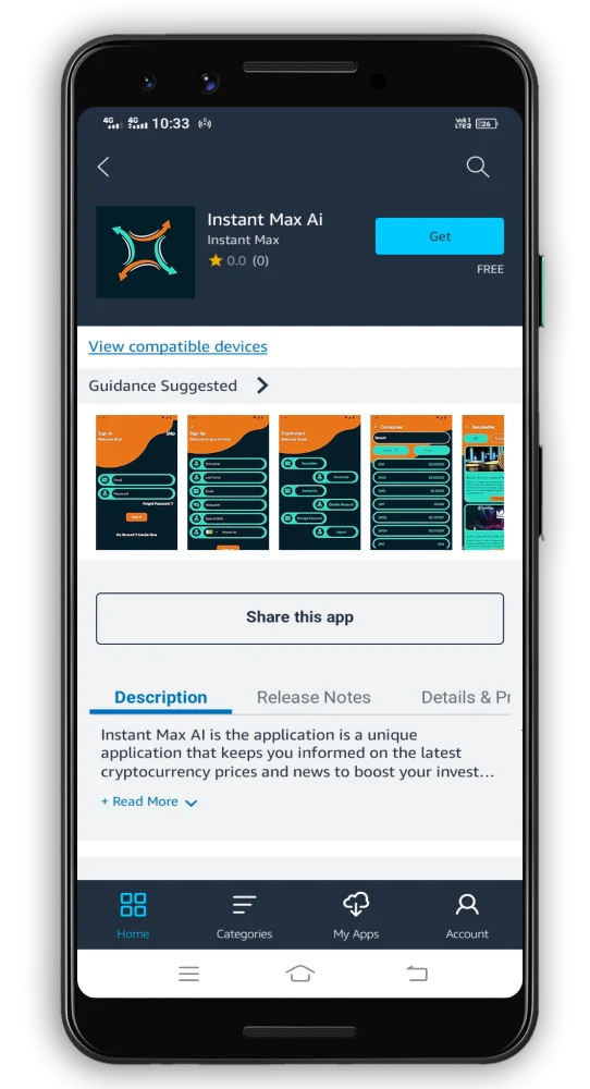 Search for app “Instant Max Ai” and click